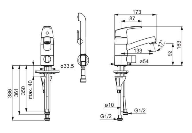 Cмеситель для умывальника с клапаном для посудомоечной машины и ручным душем Bidetta с поворотным изливом. Угол поворота излива 100° (заводская установка), может быть изменен. Клапан для посудомоечной машины с подводом холодной воды. Двухкомпонентная прочная рукоятка обеспечивает удобство использования. Встроенные опции ограничения температуры и напора воды.
