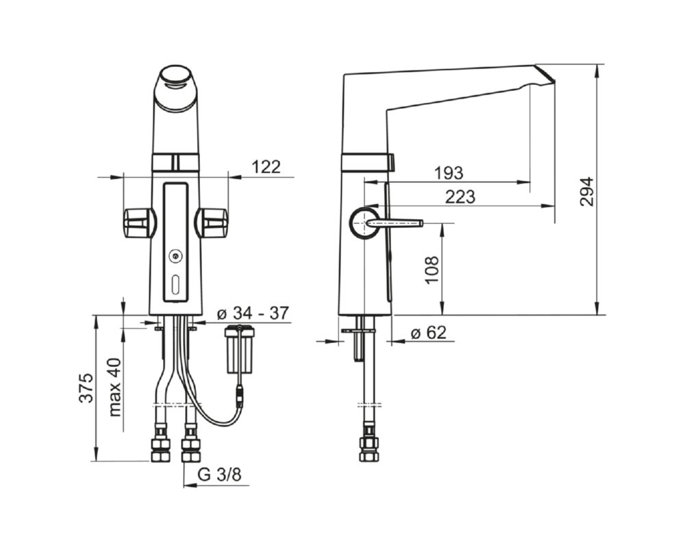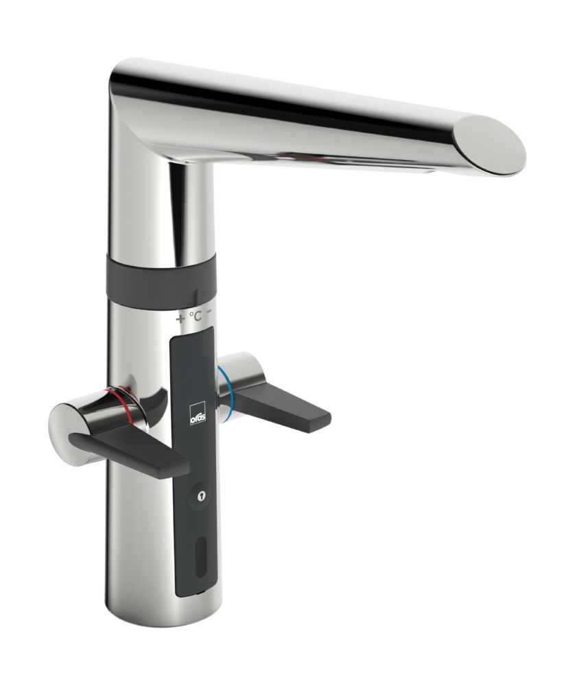 Смеситель для кухни с удобными рукоятками для горячей и холодной воды, бесконтактной функцией, высоким поворотным изливом и аэратором. Расход горячей и холодной воды регулируется отдельными рукоятками. Угол поворота извива составляет 120° (заводская установка). По желанию поворот излива может быть ограничен до 60° или 80°. Для активации бесконтактной подачи воды поднесите руки к датчику. Температура воды при бесконтактной работе регулируется поворотом кольца между смесителем и изливом. Бесконтактная функция легко включается/ выключается. Работает от батареи 3 В. Смеситель оснащен грязевыми фильтрами.