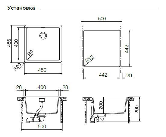 Мойка Schock Greenwich 50 гармонично сочетается с другими сантехническими приборами и бытовой техникой. Поверхность из материала CRISTADUR устойчива к механическим повреждениям, загрязнениям и ультрафиолету, поэтому сохраняет эстетичный внешний вид в течение долгого времени. Конструкция прибора предусматривает три способа монтажа: врезной, подстольный и на одном уровне со столешницей, что обеспечивает свободу планировки. Клапан-автомат позволяет закрывать и открывать сливное отверстие поворотом переключателя, который расположен на чаше мойки, что гарантирует комфорт использования.