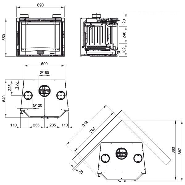Дровяная печь La Nordica Inserto 70 Ventilato Prismatico