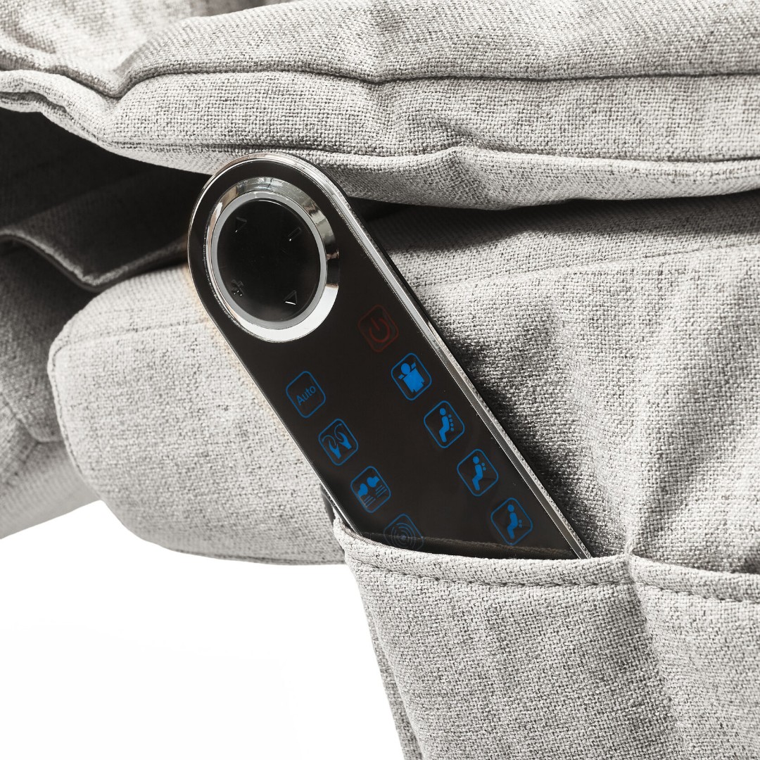- Интеллектуальный дизайнерский пульт управления размещается в удобном кармане на подлокотнике кресла.