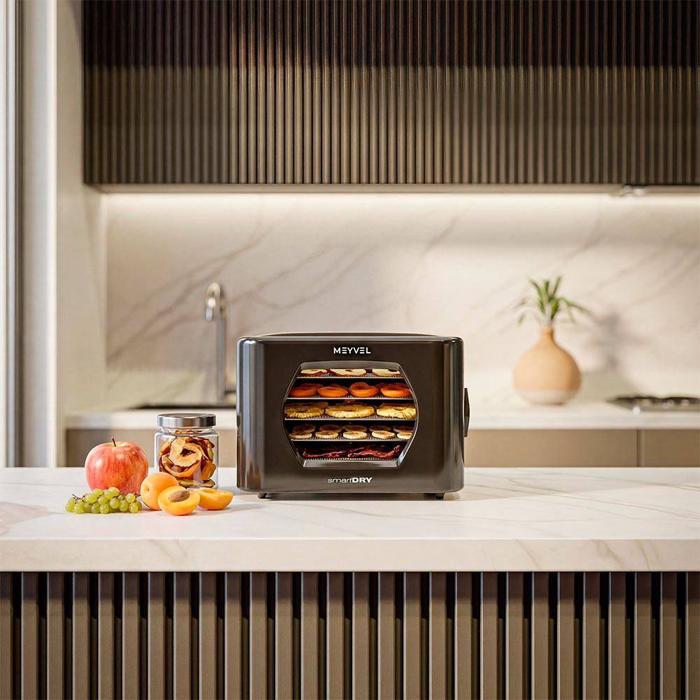Meyvel MDH5-2P (Чёрный) (Black) подходит тем, кто делает домашние заготовки, придерживается правильного питания или просто любит натуральные снеки без добавок. С его помощью можно готовить фруктовые чипсы, овощные смеси для супов, сушеные ягоды для выпечки, травяные сборы и мясные закуски. Один прибор закрывает множество задач и помогает по-новому взглянуть на привычные продукты.