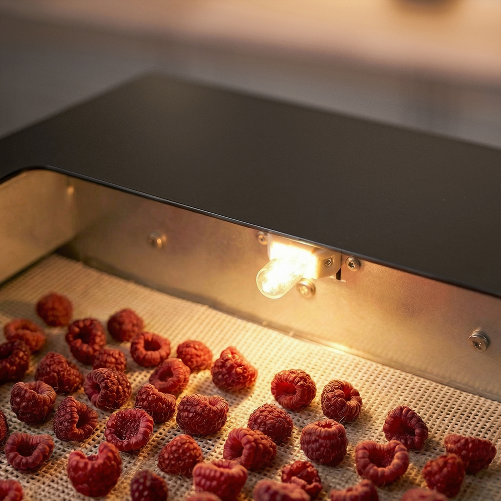 Дегидратор оснащён сенсорной панелью, которая значительно упрощает процесс настройки. Никаких механических рычагов и лишних кнопок — всё управление сосредоточено в одном месте.