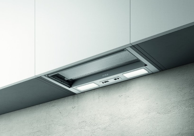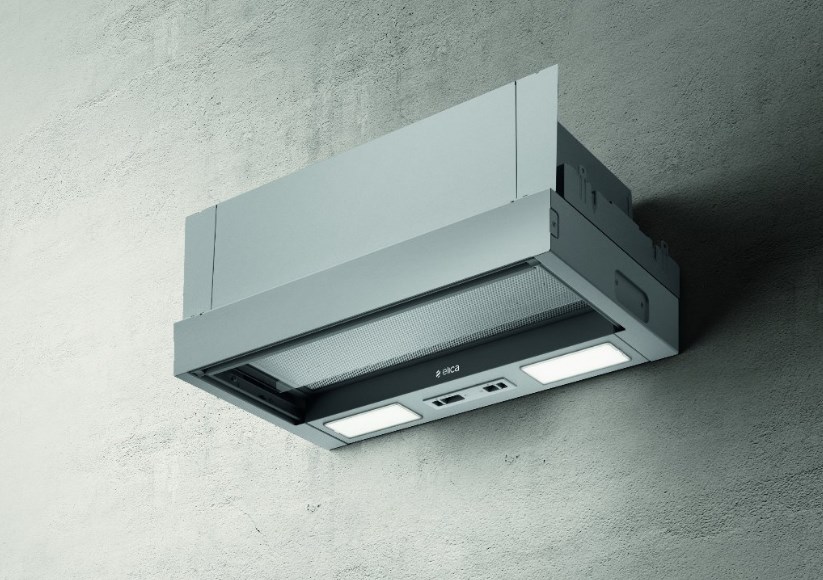 Абсолютно уникальный продукт на рынке, только компания Elica предлагает полностью встраиваемую вытяжку в компактных габаритах, имеющую выдвижной стеклянный козырёк, который выполняет защитную функцию для мебели, автоматически включает работу мотора при выдвижении, а также служит для направления испарений в зону забора воздуха у вытяжки.