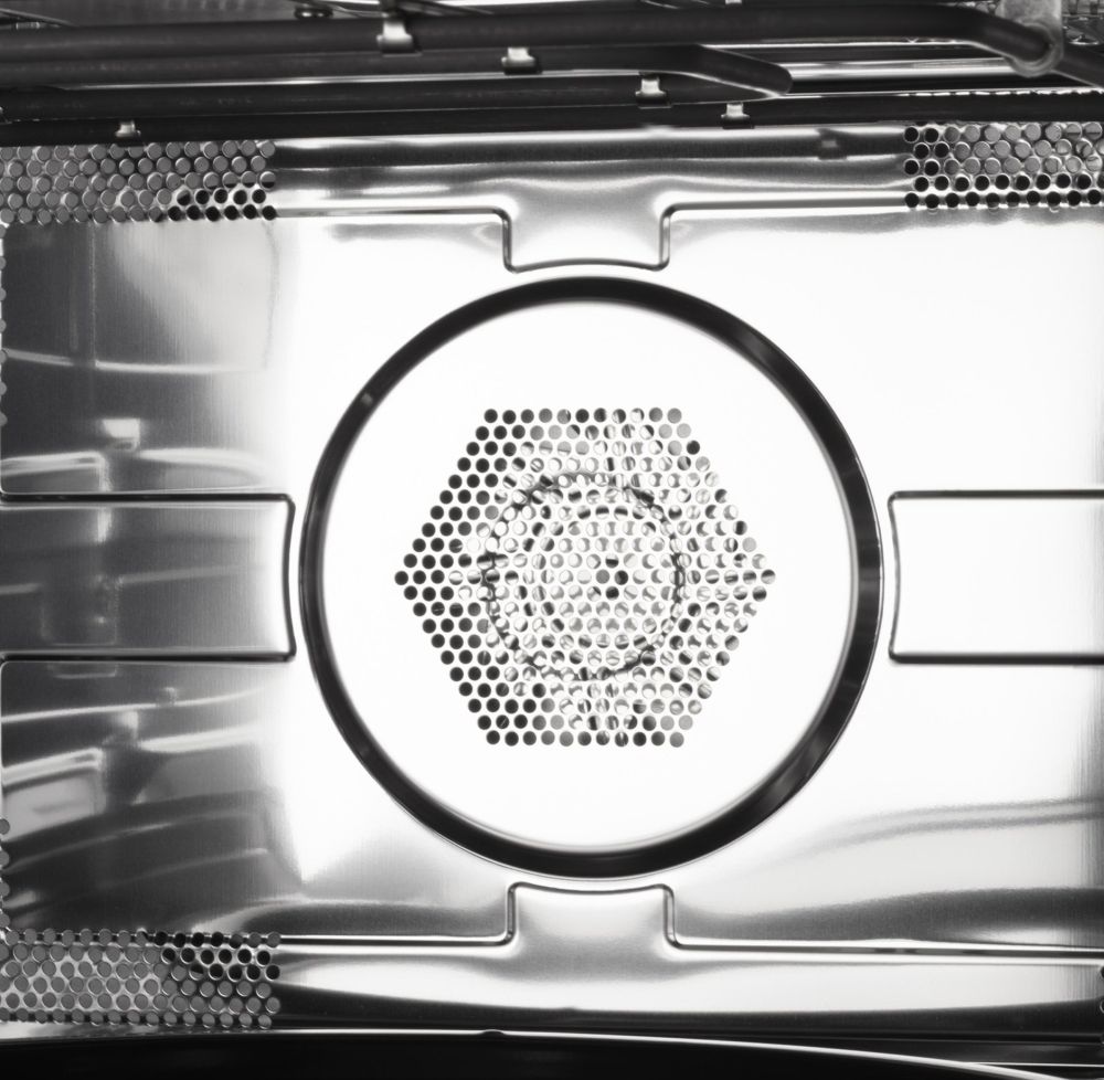 Нагревание производится при помощи нагревательного элемента гриля. Воздух в рабочей камере равномерно циркулирует под воздействием специального вентилятора.